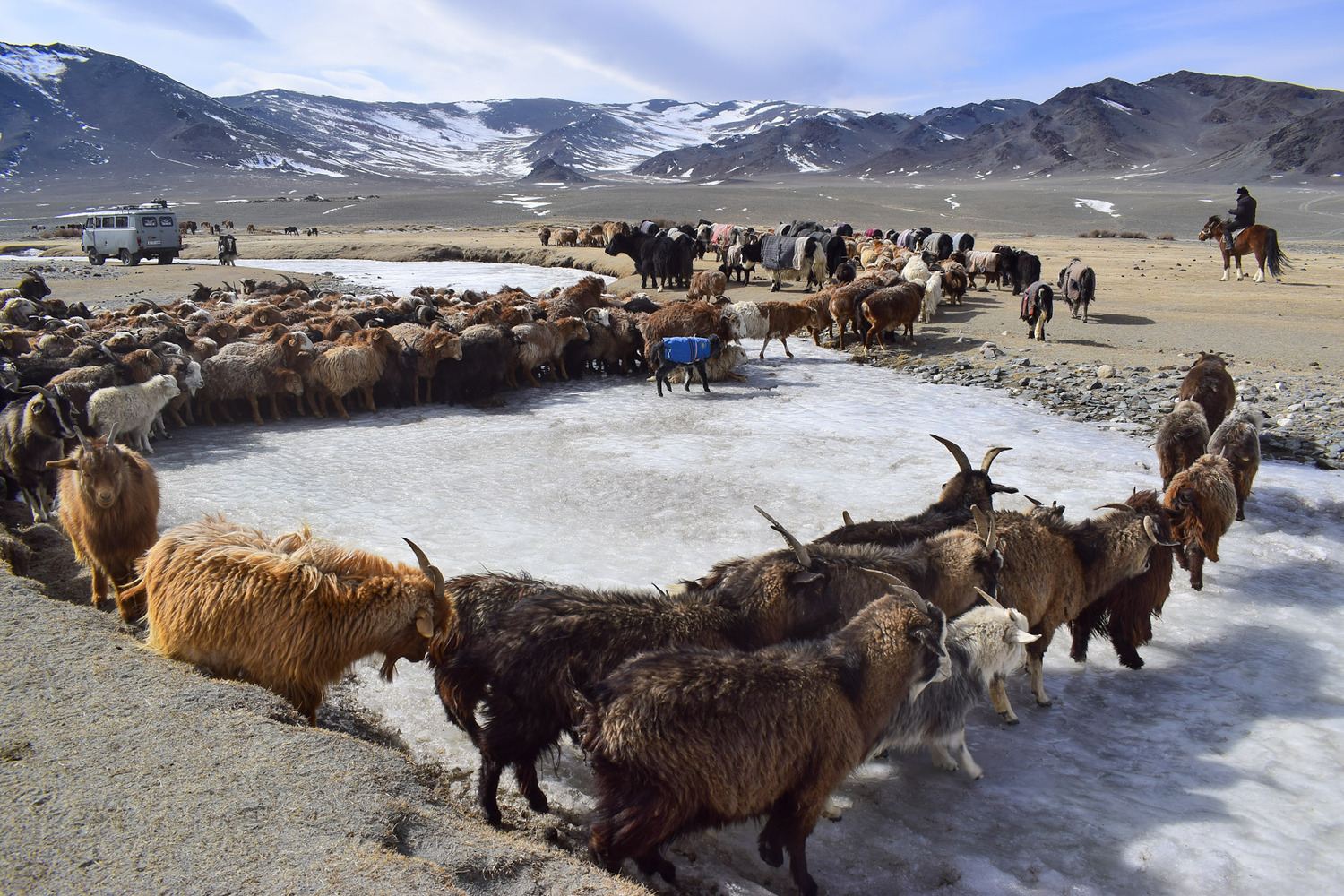 Mongolia in winter; you must be mad! Truthfully though, this is one of the most rewarding trips that I have ever done. I have experienced an authentic eagle hunt on several occasions now, and while the spectacular sight of man and raptor working in age-old harmony never fails to amaze, there is something magical about immersing oneself in the time-honoured rythmns of a nomadic migration, and actively helping to shepherd a family's livestock through foothills of the Altai Mountains. This is a tradition that is fading fast, even in Mongolia, where these days the bulk of transhumance is typically done by truck. So why not join us in 2027, before it disappears for good.